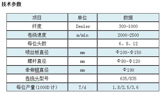 丙綸紡絲機主要特點 1.螺桿為加長型,變頻及壓力調(diào)節(jié)儀器為進口品牌 2.采用了新型高效節(jié)能型紡絲箱體,比普通紡絲箱節(jié)能。 3.采用上裝式組件,方便紡絲工操作。 4.側(cè)吹風(fēng)系統(tǒng),風(fēng)速均勻穩(wěn)定,纖維條干好。 5.丙綸紡絲機采用感應(yīng)或高頻加熱牽伸輥輥,降低能耗。 6.多種組合的多級牽伸和熱定型方式可滿足丙綸牽絲不同性能的要求。 7.丙綸紡絲機采用全自動卷繞頭,切換成功率高,廢絲率低,成形良好。 8.溫控儀表、變頻器為進口品牌。