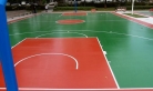 1、將球場面漆按配比稱重,加適量止滑粉,攪拌均勻后滾涂于PU表面上。