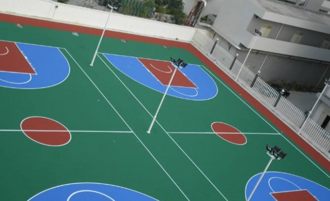 3、硅PU網(wǎng)球場底漆施工:基層干燥后,對明顯凸出部分進(jìn)行打磨處理,然后施工底漆,施工時水泥基面要求堅固、干燥、干凈、平整,無油污及粉化現(xiàn)象。